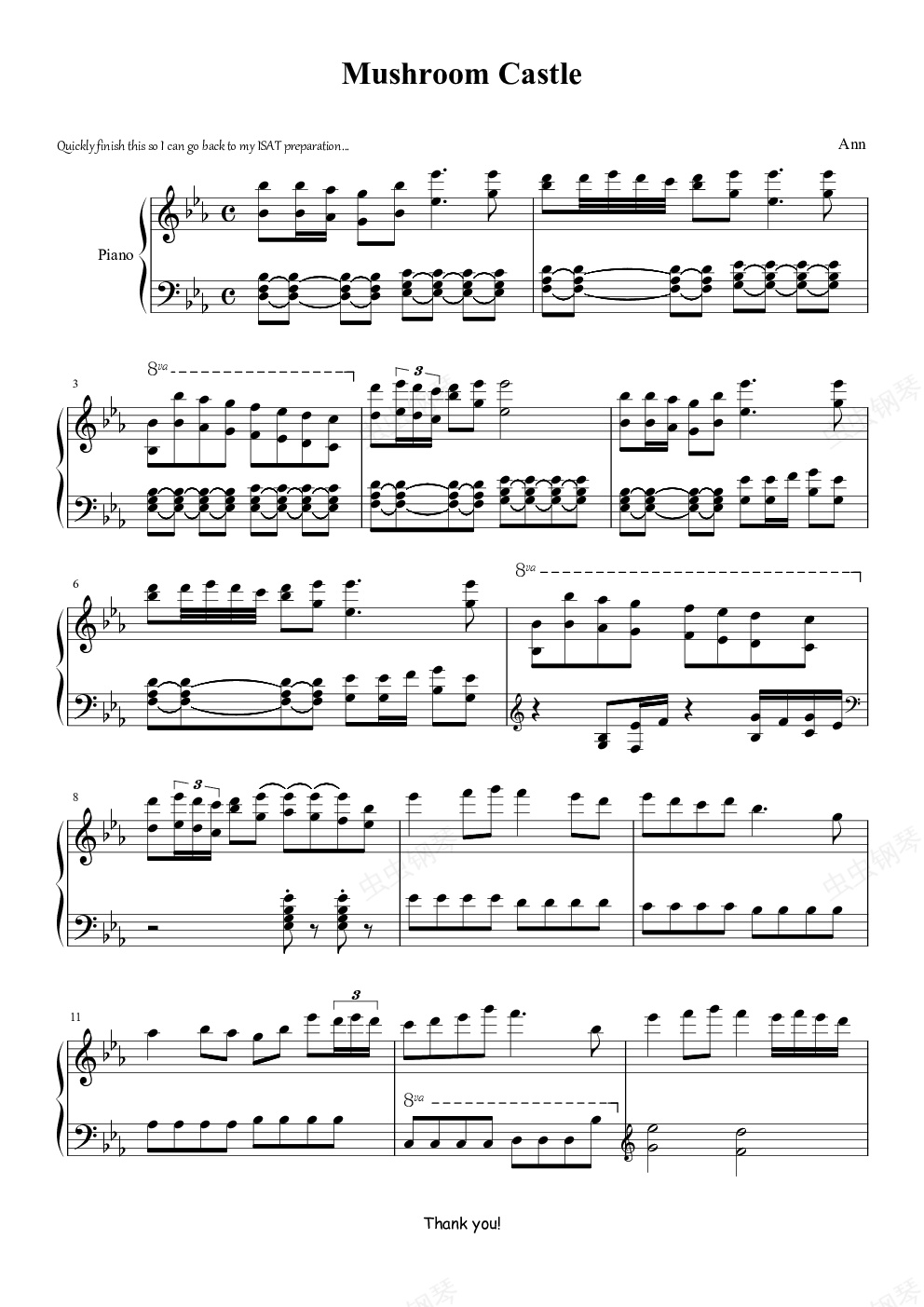 钢琴谱:冒险岛-蘑菇城内