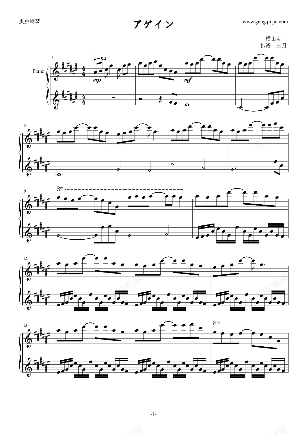 第二次扒谱请多指教☆~关于这个谱子还是有点需要注意的地方的:左手的十六分音符其实每个小节都是一样的,但是!!27-34小节因为这个左手和右手重合了!左手和右手重合了!左手和右手重合了!【因为是很重要的事所以要说三遍】所以是没有办法正常弹奏的qwq【应该是因为这首曲子不是钢琴独奏的缘故qwq】 不过为了追求高还原度的听觉效果所以就没有做更改,大家在弹的时候可以自行调整右手或者是把左手移低一个八度。因为自身水平有限而且还没有亲测过实际效果,所以如果哪里有什么问题可以给我指出来【鞠躬