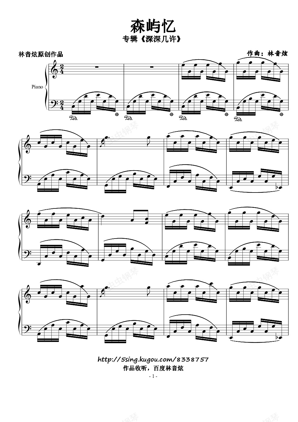 钢琴谱:《深深几许》No.7森屿忆-林音炫