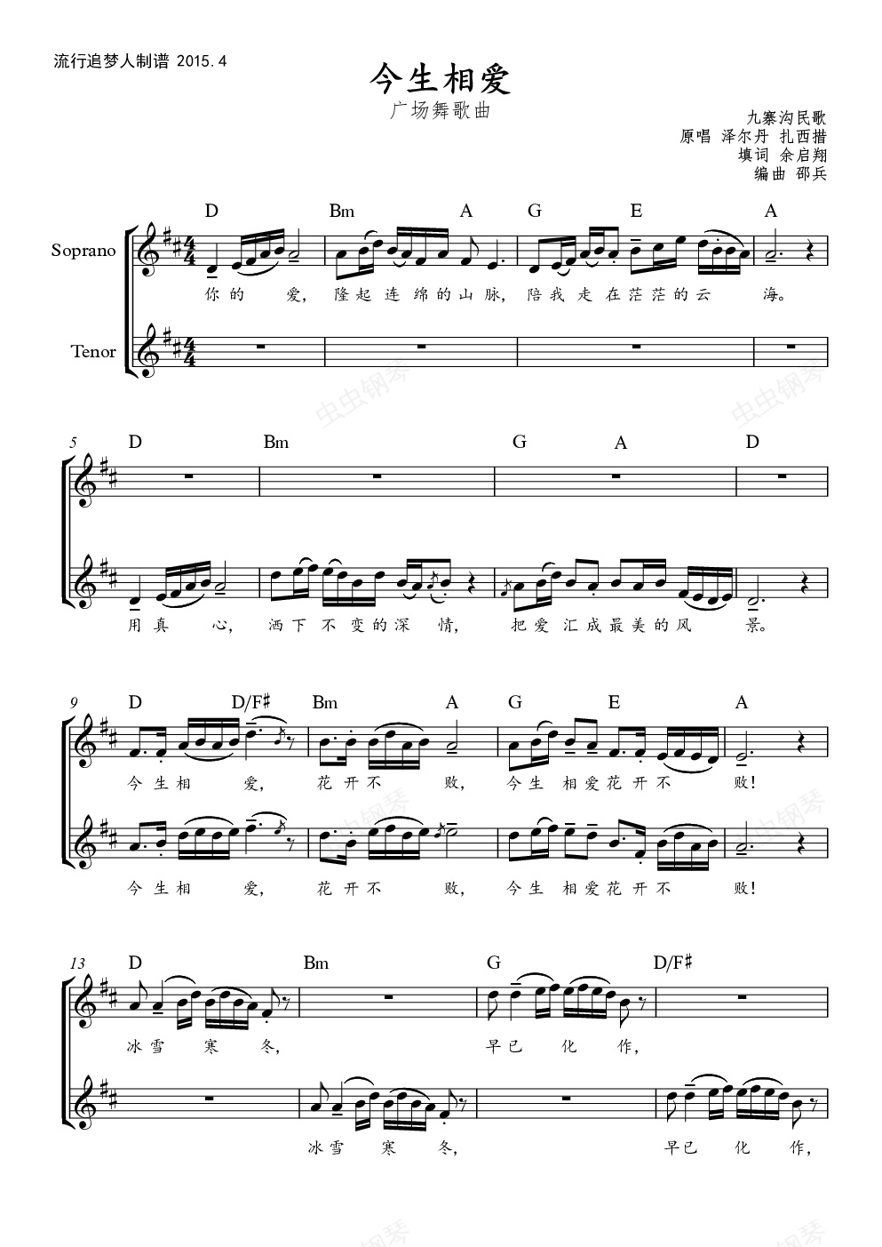 钢琴谱:今生相爱