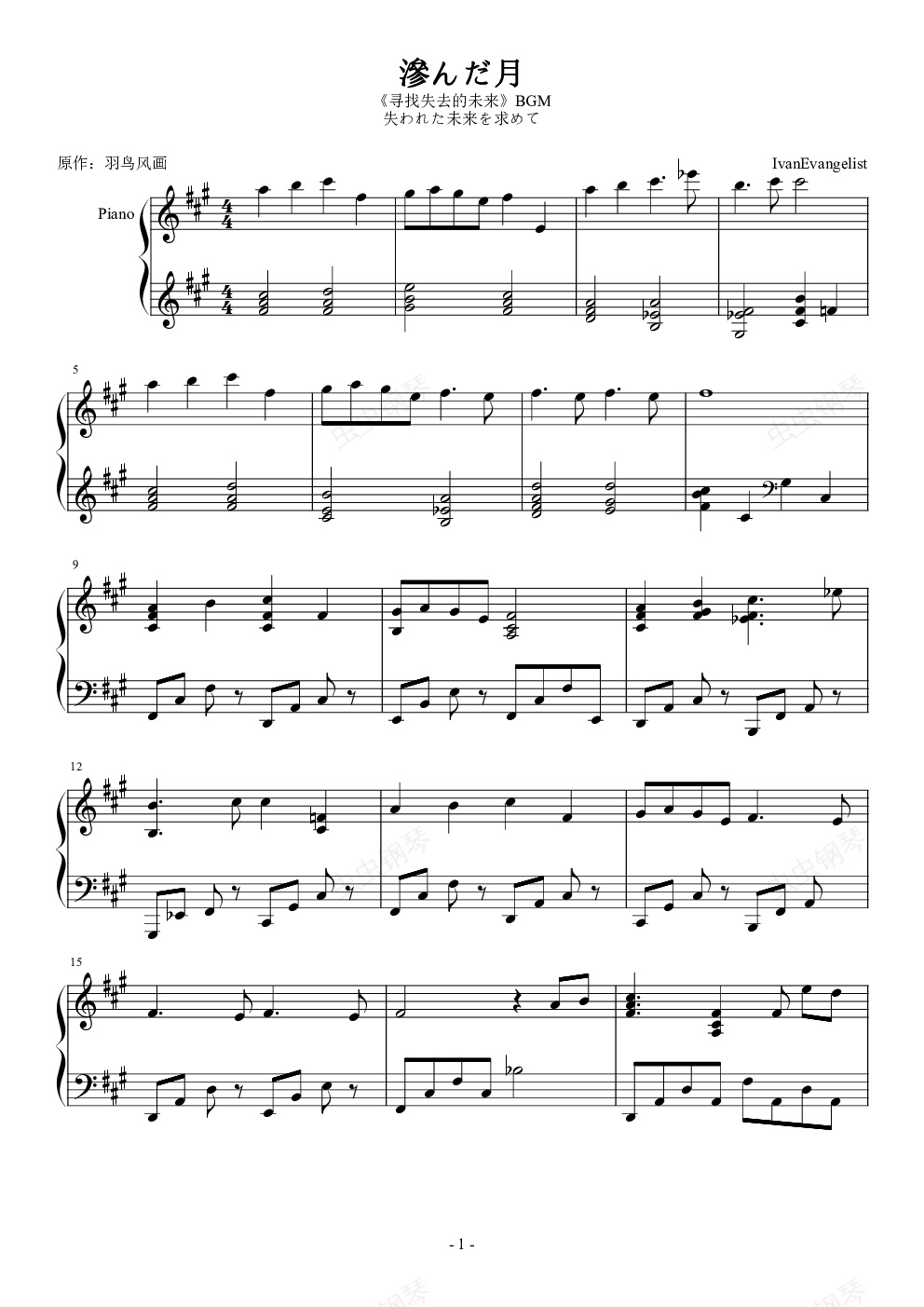 钢琴谱:滲んだ月-寻找失去的未来BGM