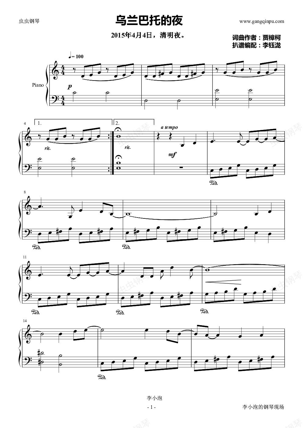 钢琴谱:乌兰巴托的夜