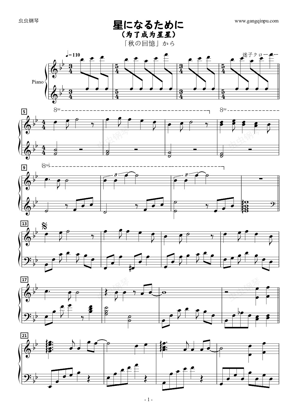 钢琴谱:星になるために