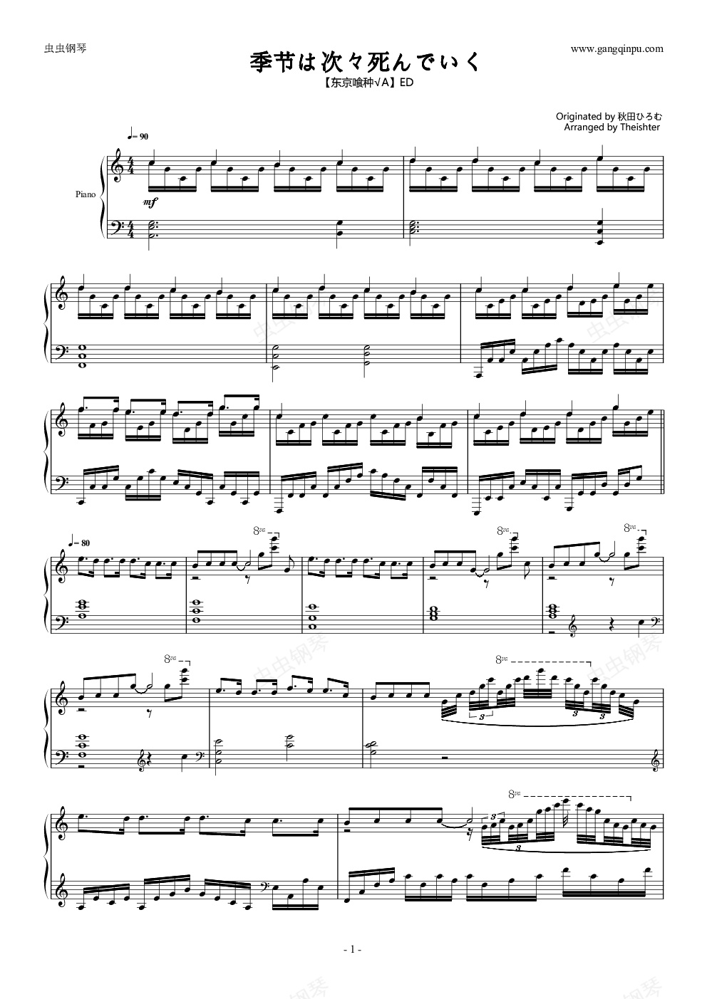 钢琴谱:【东京喰种√A】ED 季节は次々死んでいく