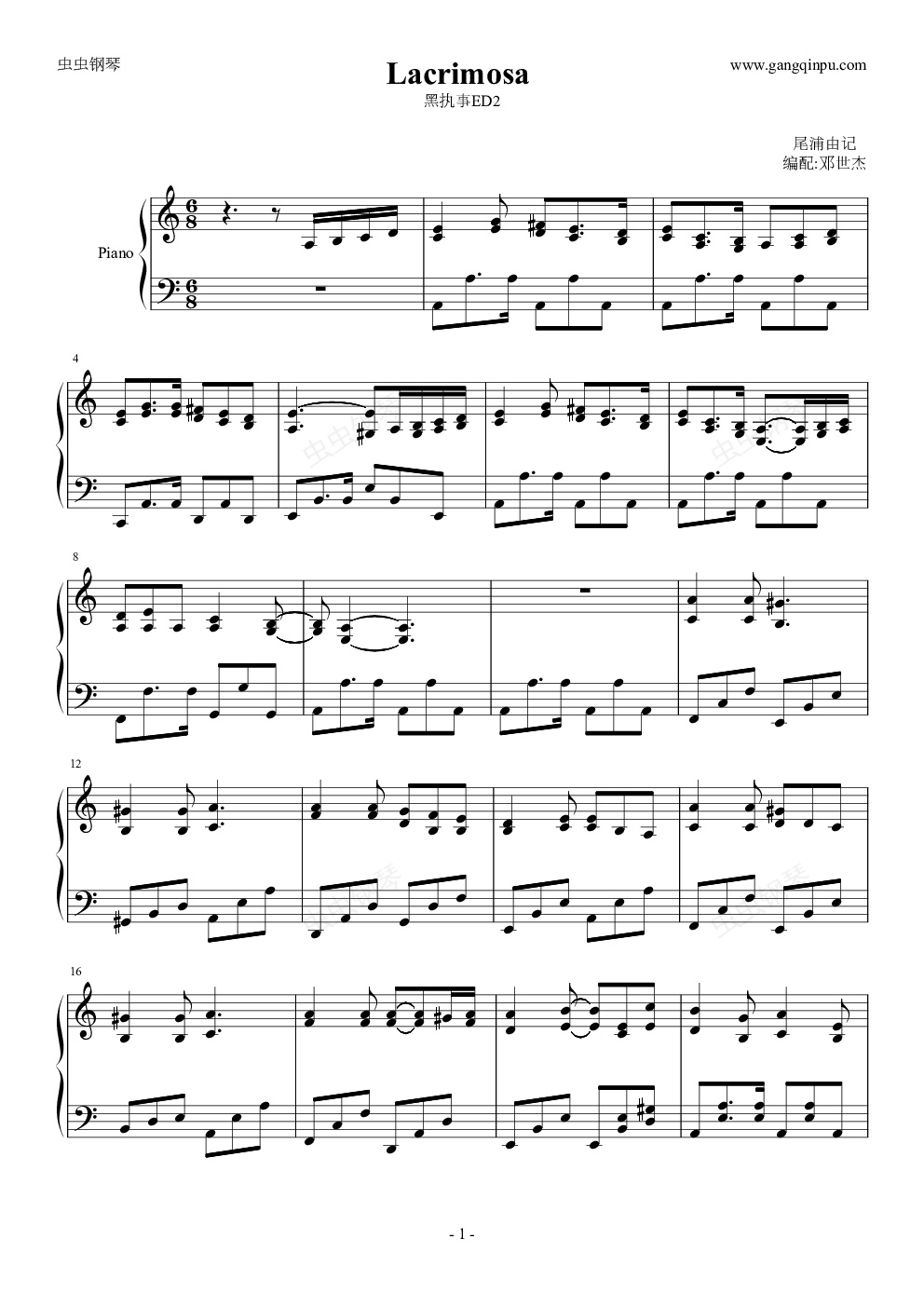 钢琴谱:【黑執事】ED2 Lacrimosa