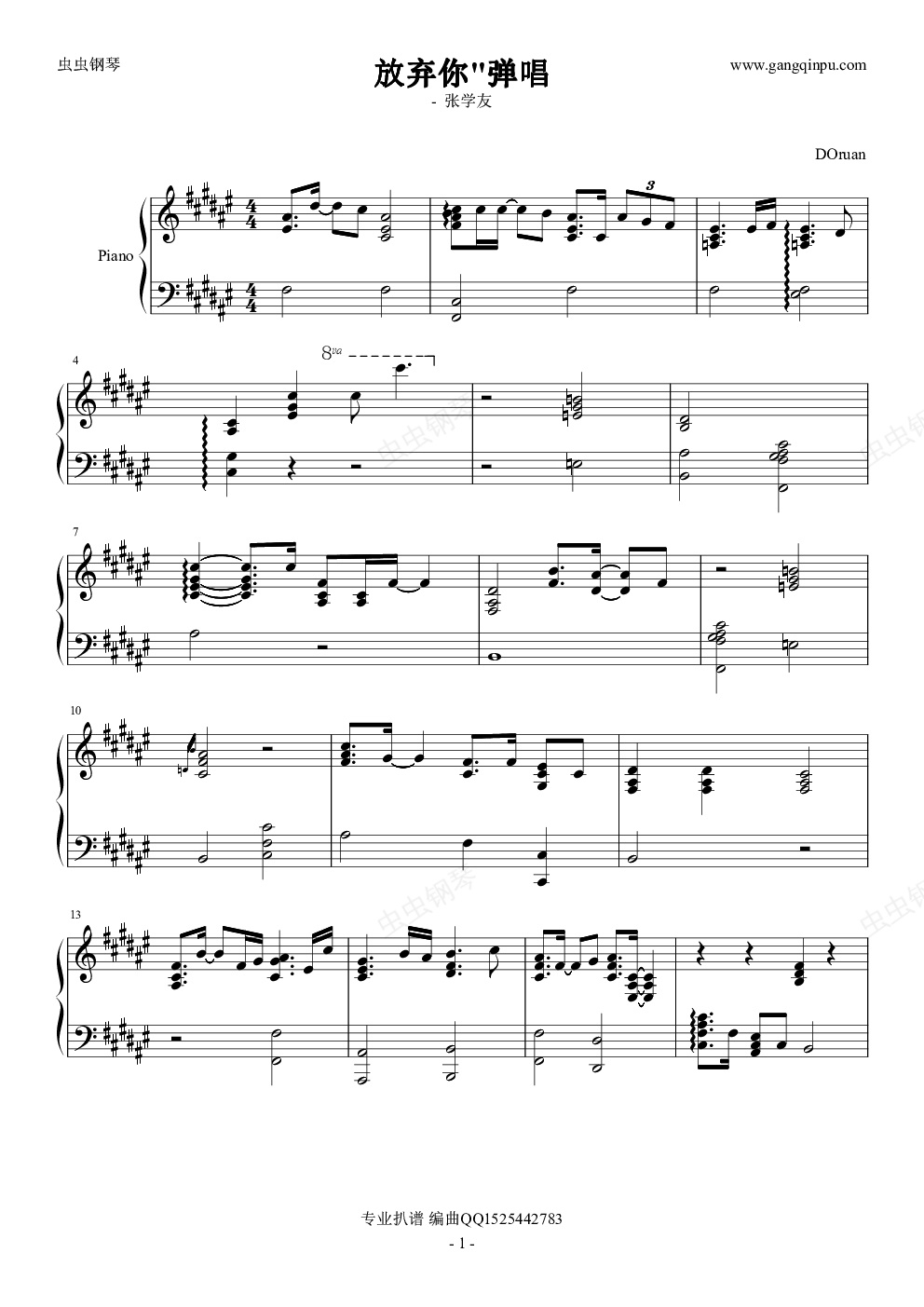 钢琴谱:张学友《放弃你》弹唱版 【乐吧】