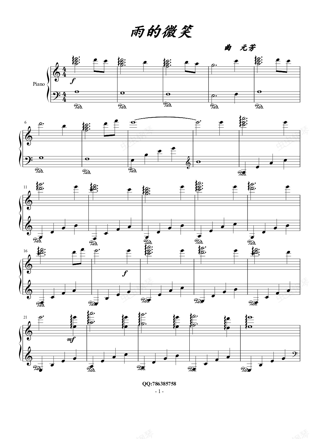 钢琴谱:雨的微笑