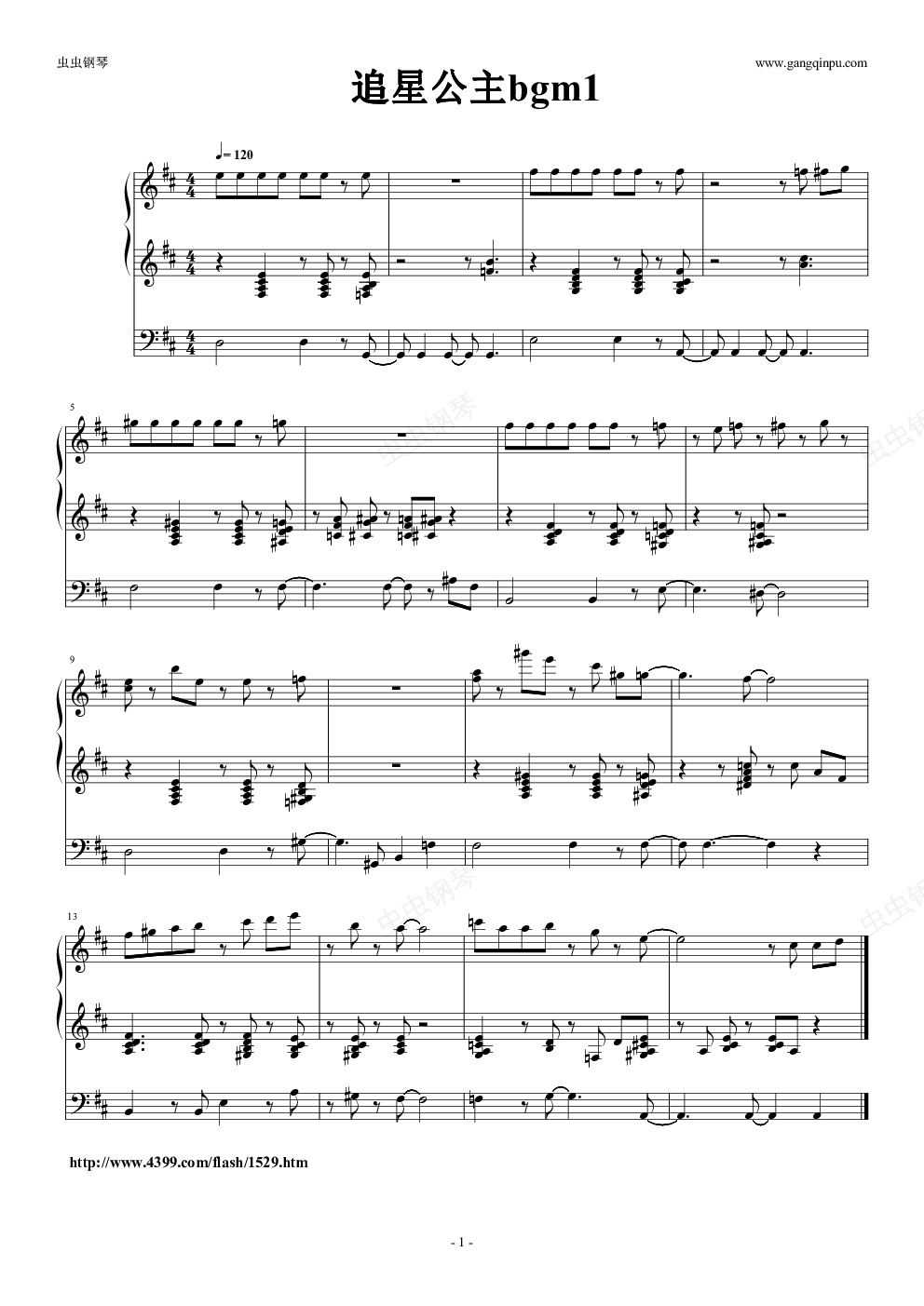 钢琴谱:追星公主bgm1【三行】