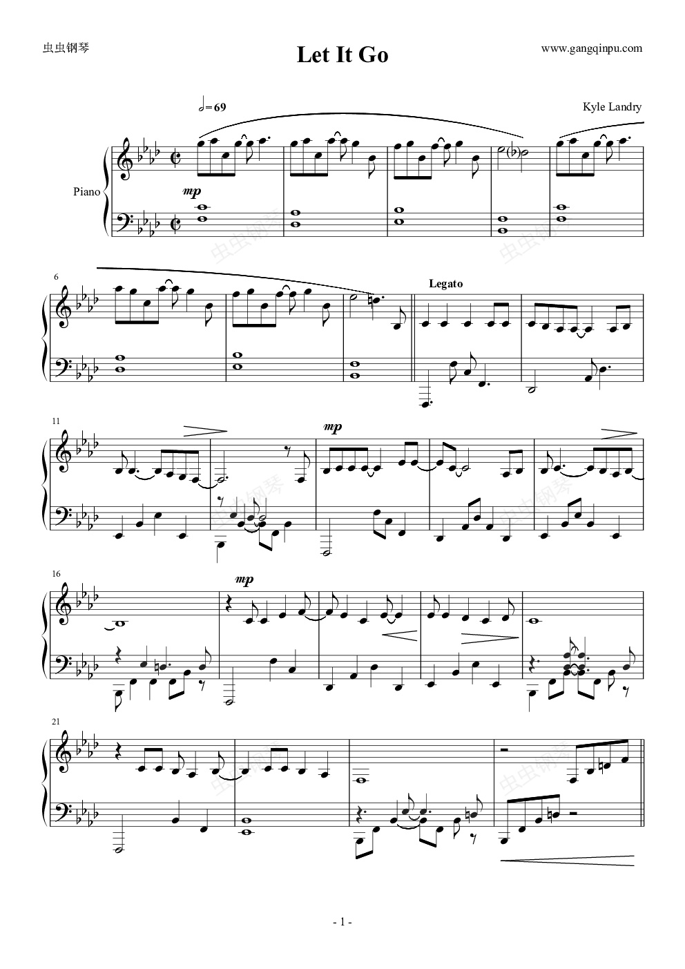 钢琴谱:Let it go - Kyle Landry (完美感情100%)