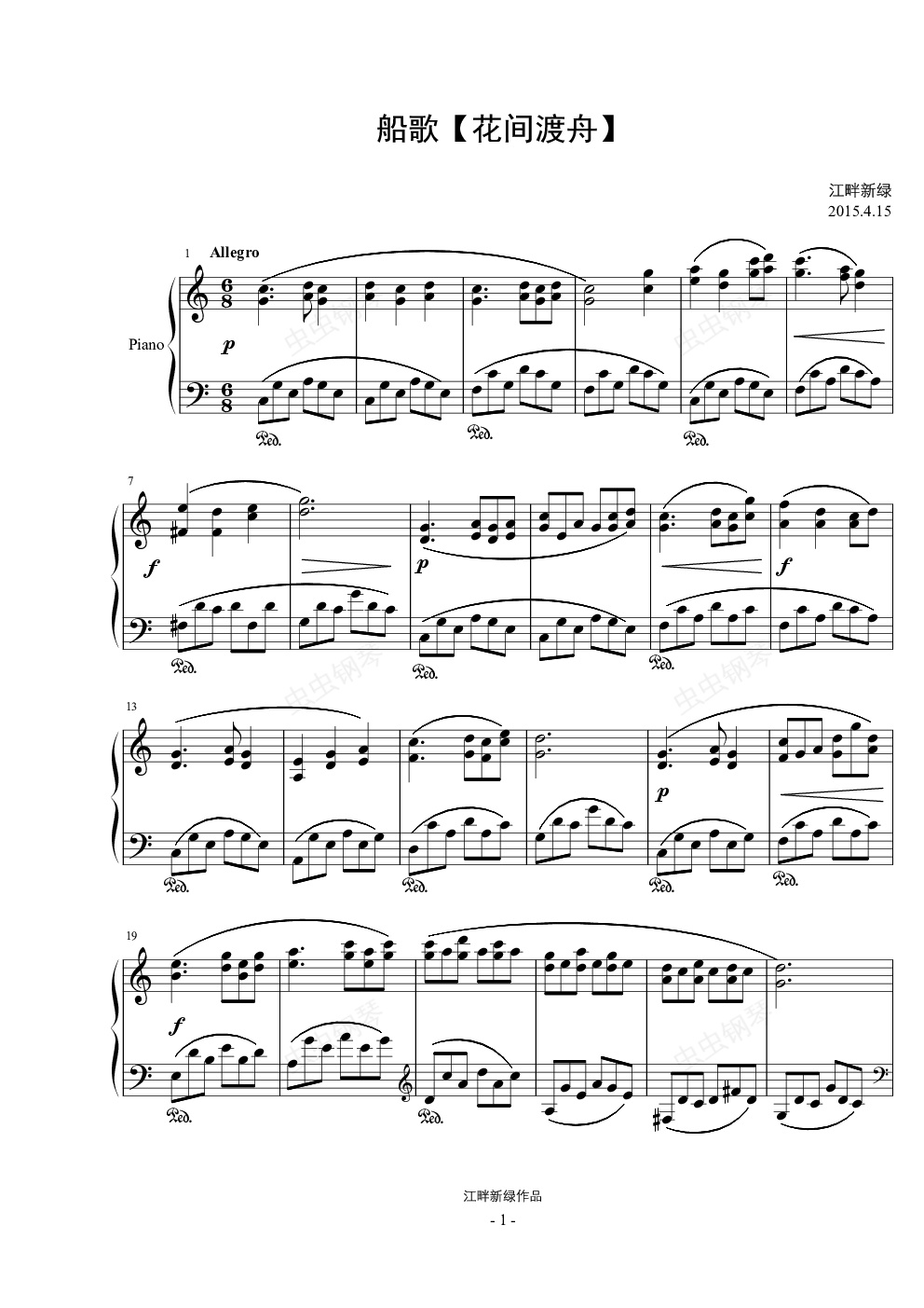 钢琴谱:船歌【花间渡舟】