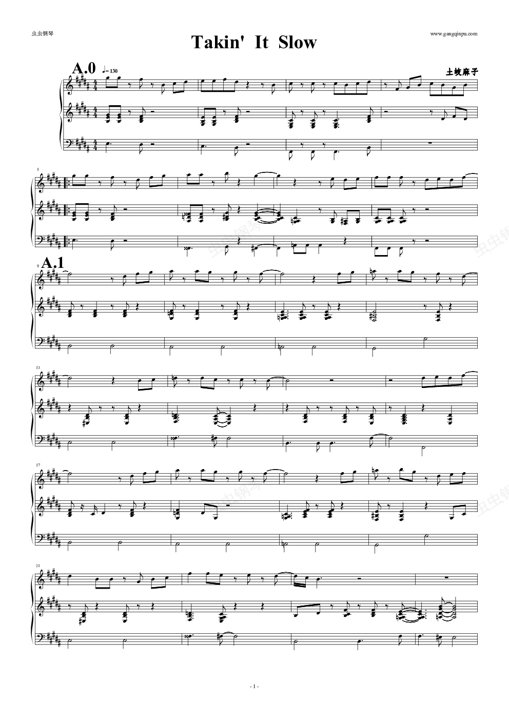 钢琴谱:Takin' It Slow【三行】