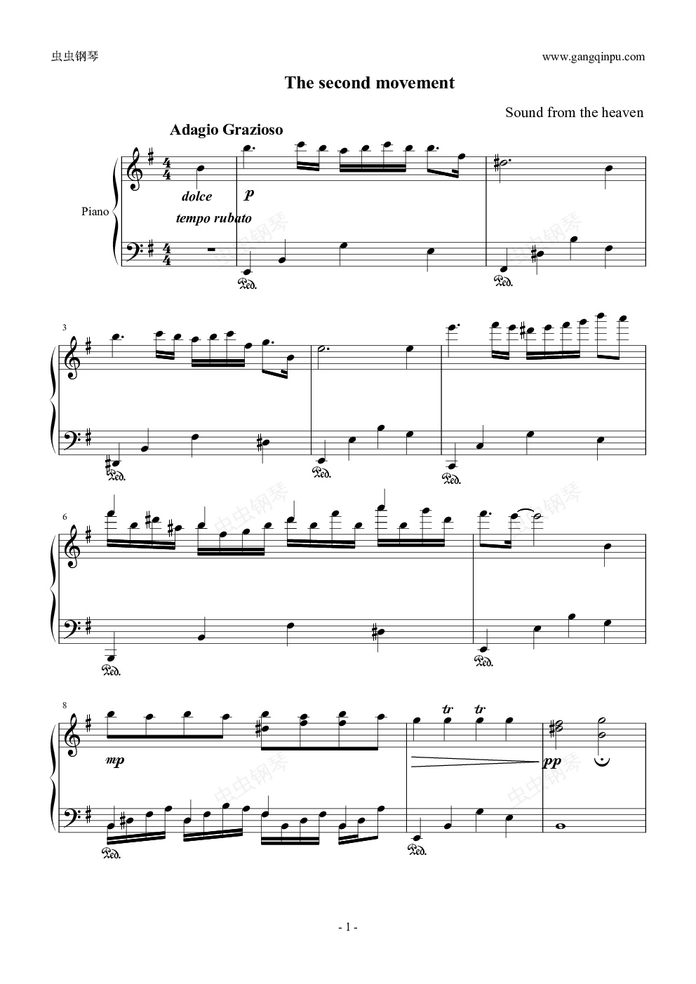 钢琴谱:g小调小奏鸣曲 第二乐章