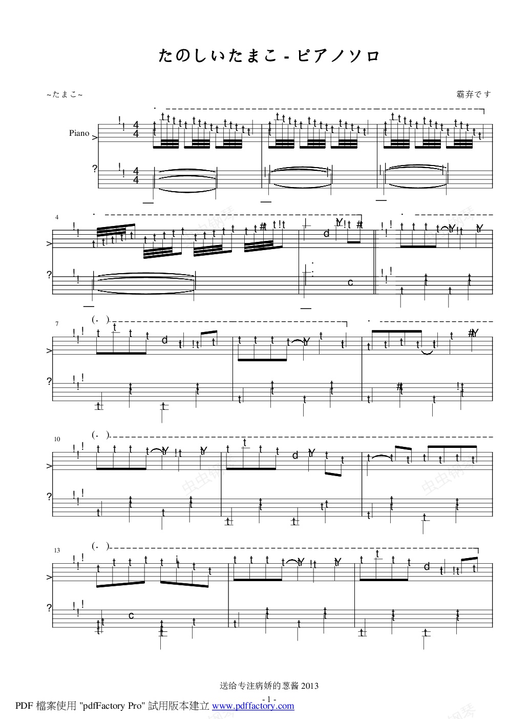钢琴谱:たのしいたまこ - ピアノソロ(玉子市场)