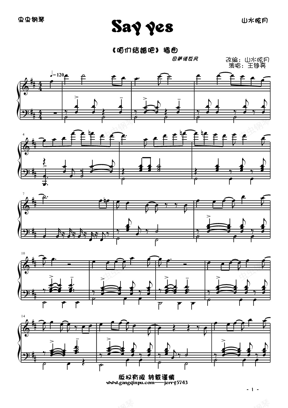 钢琴谱:巴萨诺瓦 Say yes 王铮亮