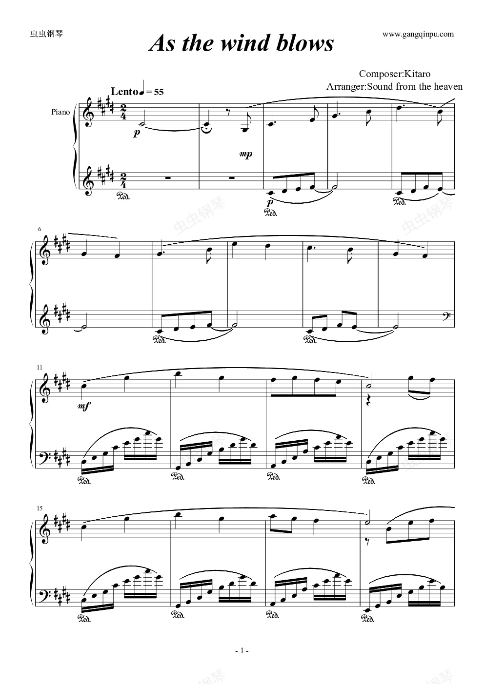 钢琴谱:As the wind blows