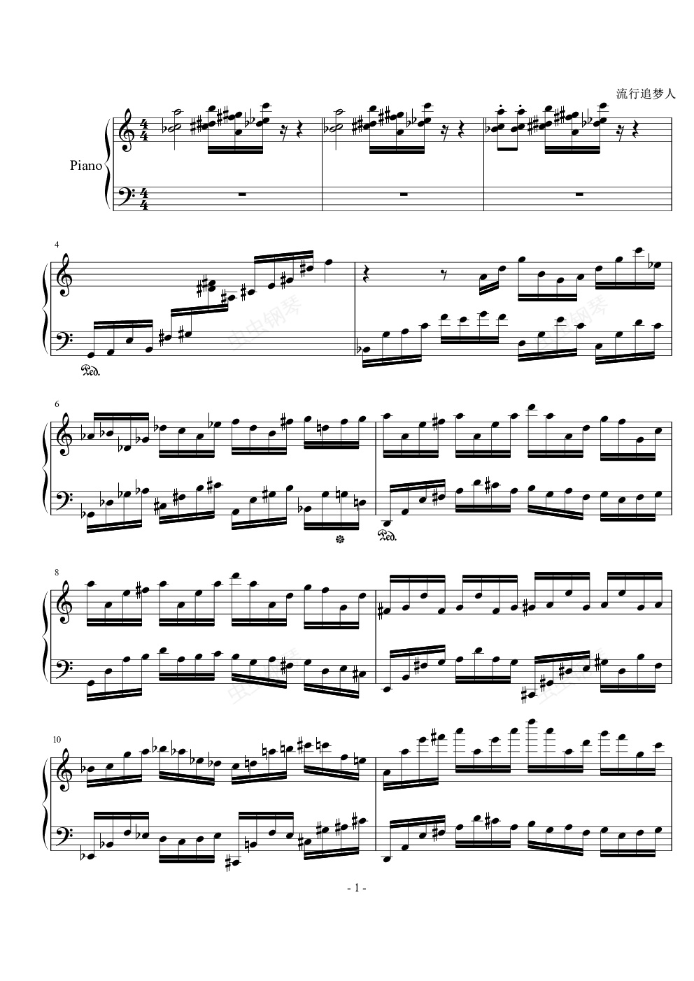 钢琴谱:水彩画组曲-4. (D大调)