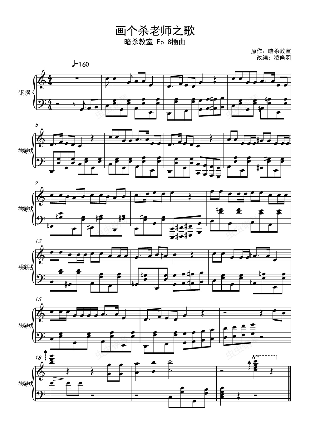 钢琴谱:画个杀老师之歌