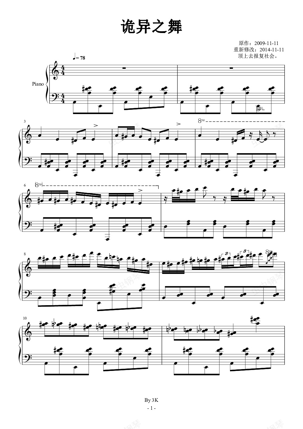 钢琴谱:诡异的舞蹈(2014-11-11重制版)