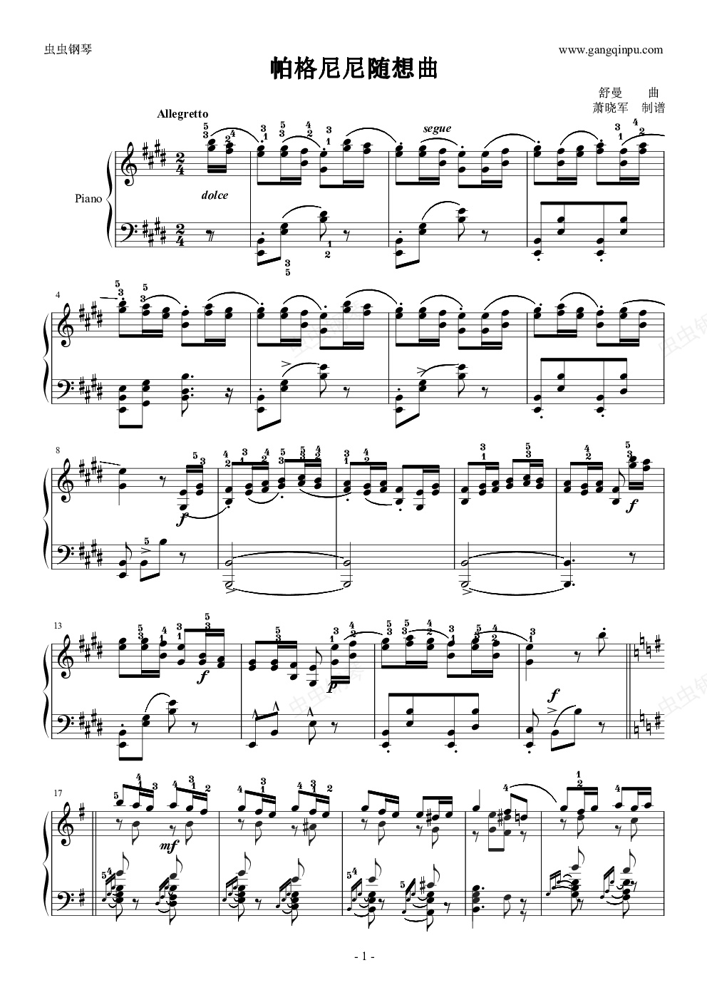 钢琴谱:舒曼-帕格尼尼随想曲(第9首)
