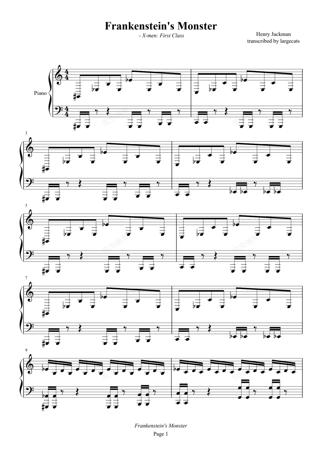 钢琴谱:Frankenstein's Monster (X战警OST)