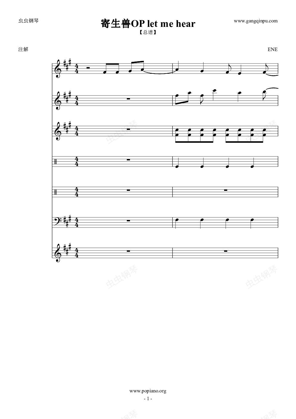 钢琴谱:【ENE】(总谱)寄生兽OP let me hear