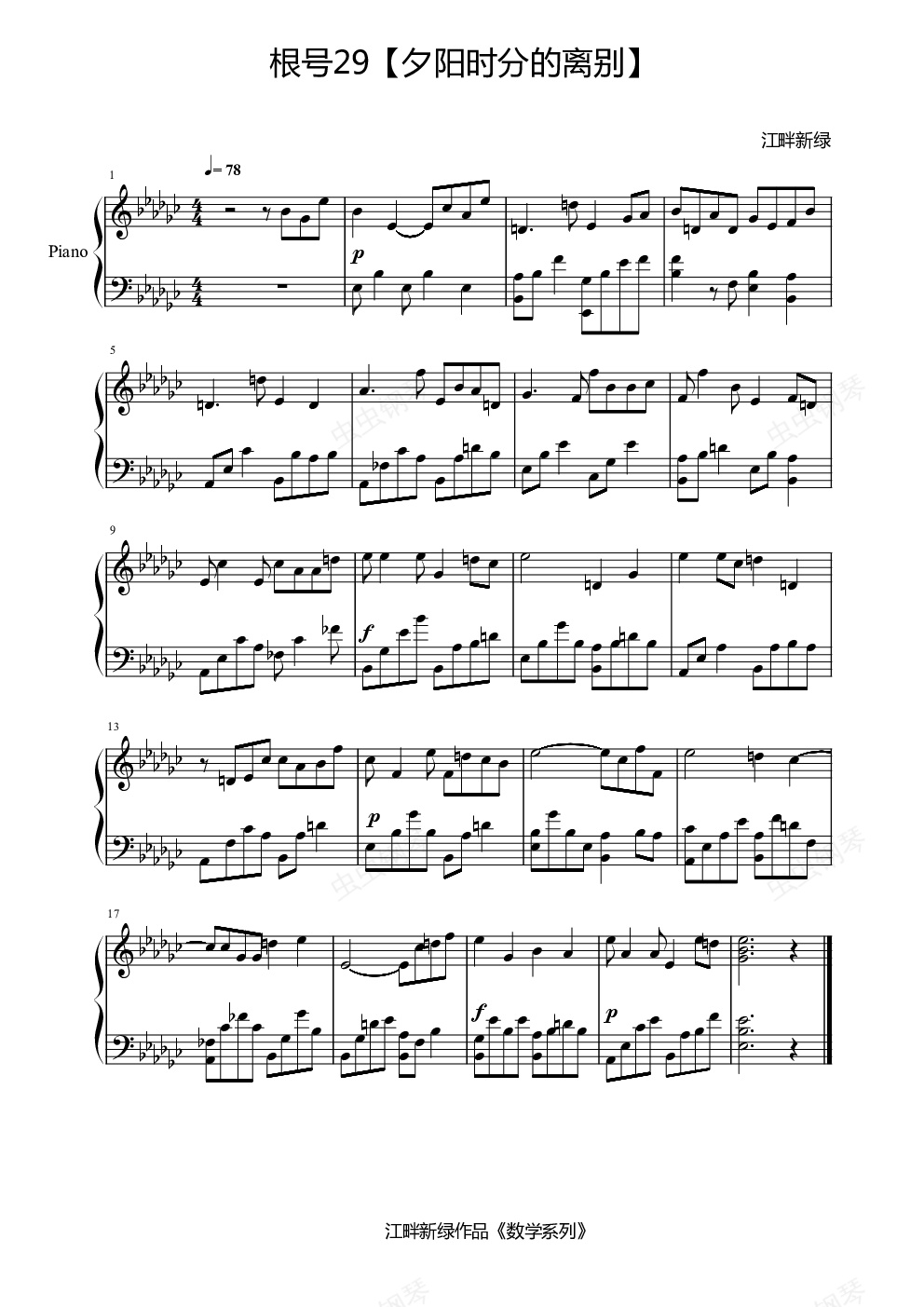 钢琴谱:根号29【夕阳时分的离别】