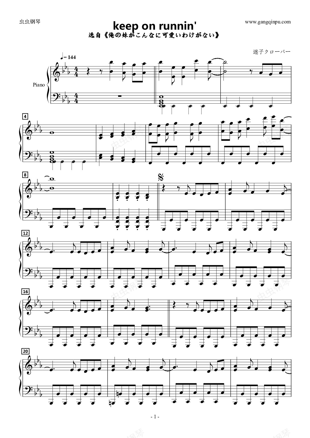 钢琴谱:keep on runnin'