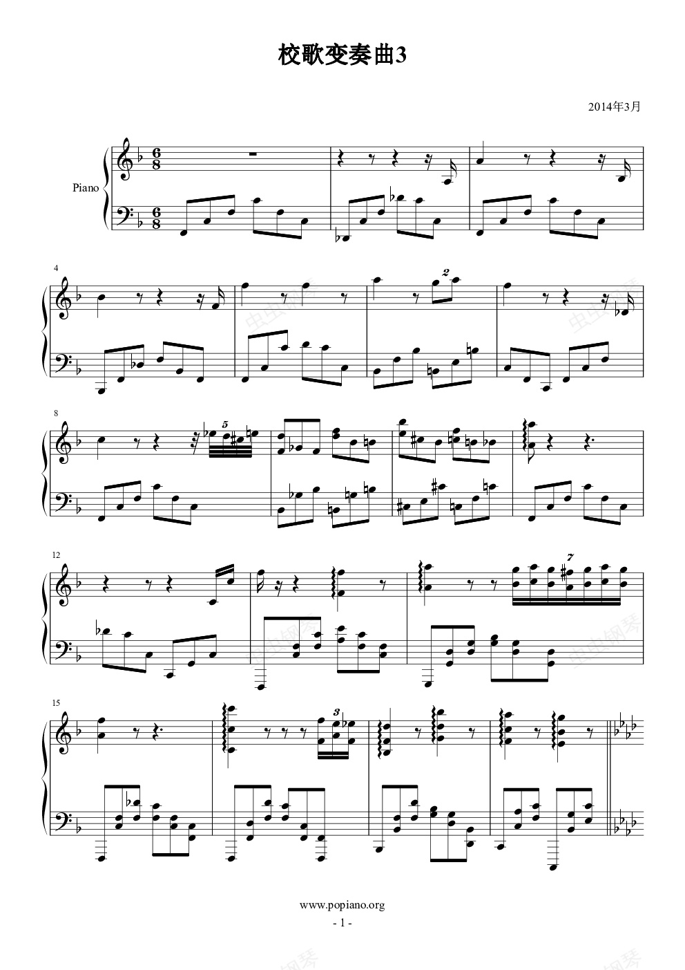 钢琴谱:校歌变奏曲3——寂静的夜曲