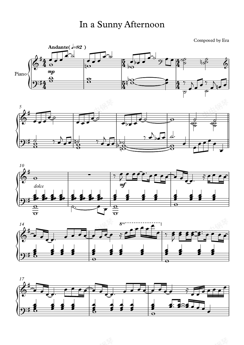 钢琴谱:午後 陽光 In a Sunny Afternoon