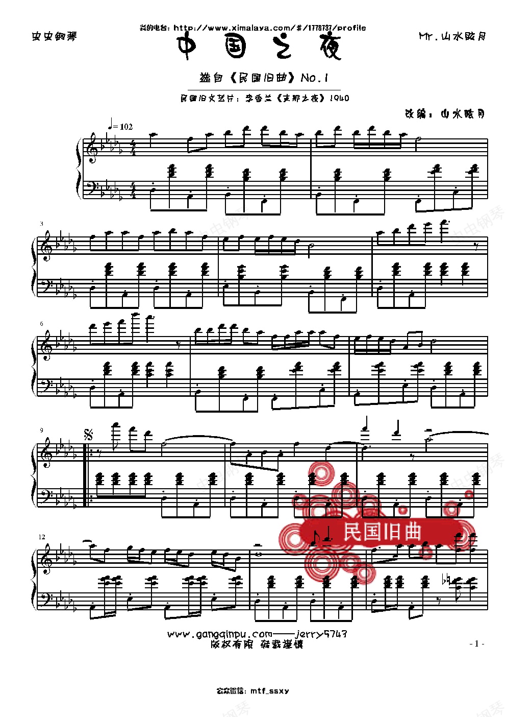 钢琴谱:民国旧曲-中国之夜