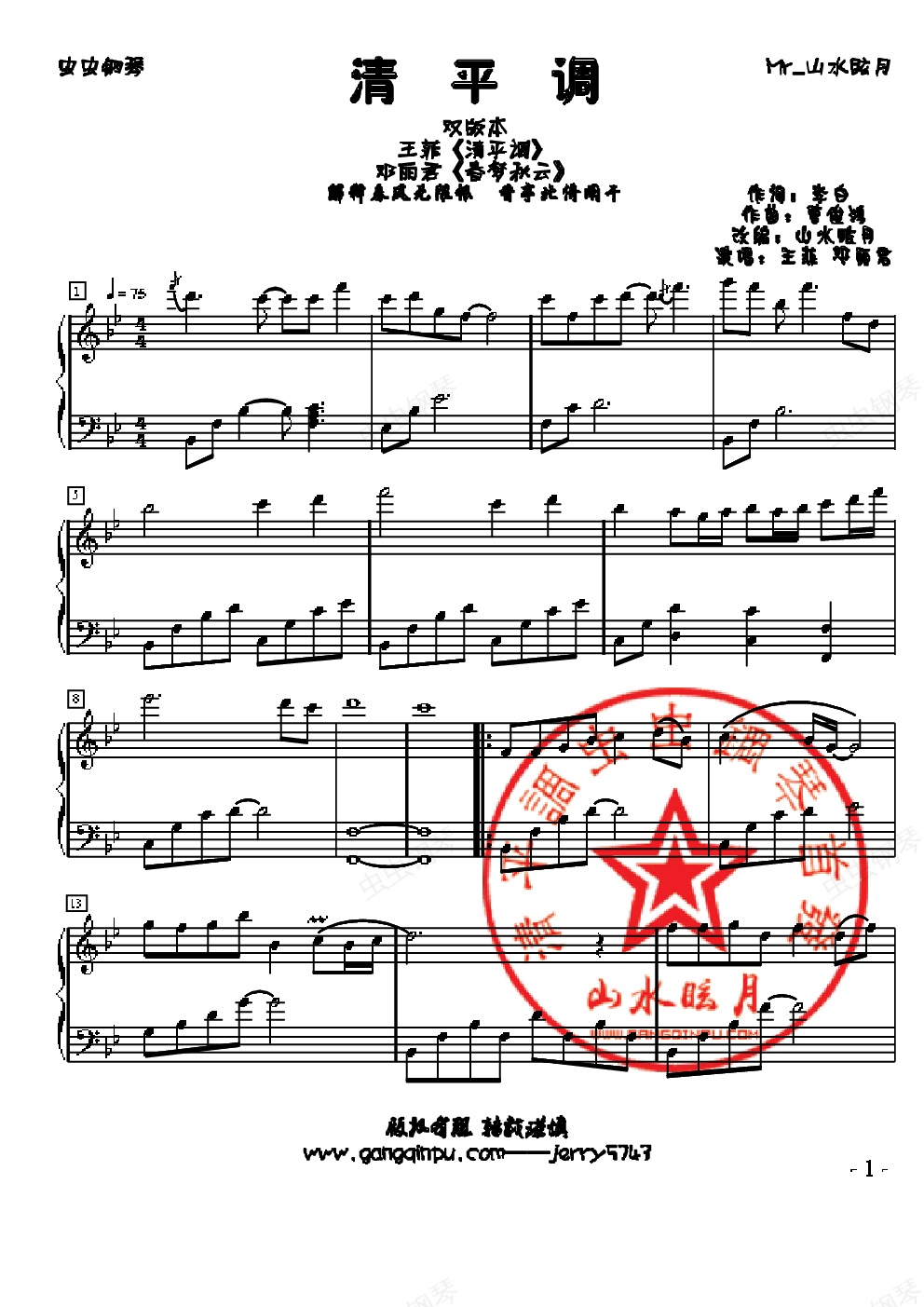 钢琴谱:王菲新专辑 清平调