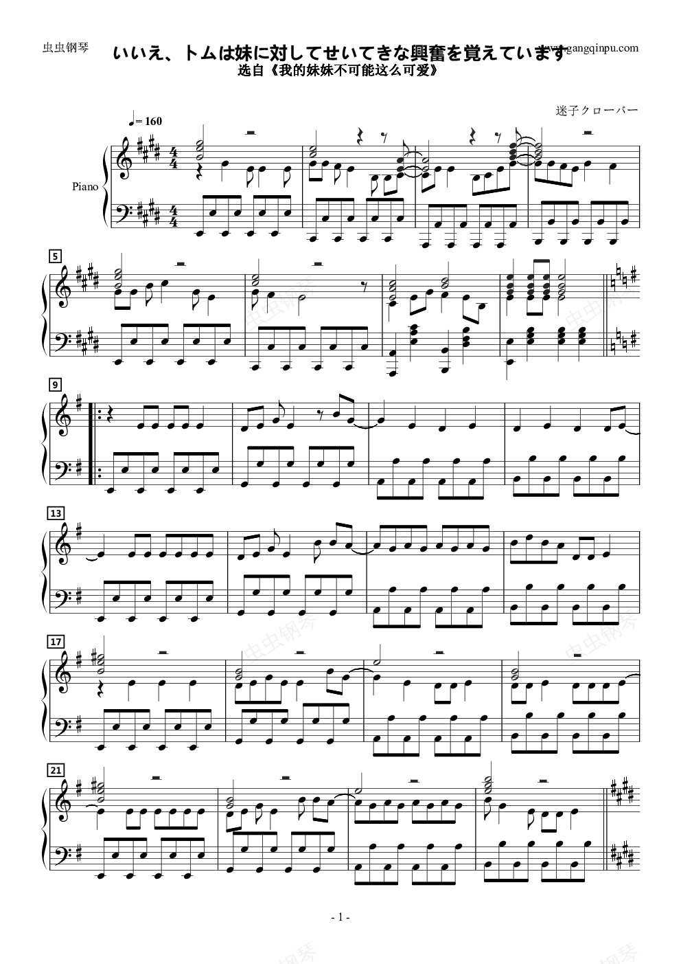 钢琴谱:いいえ、トムは妹に対してせいてきな興奮を