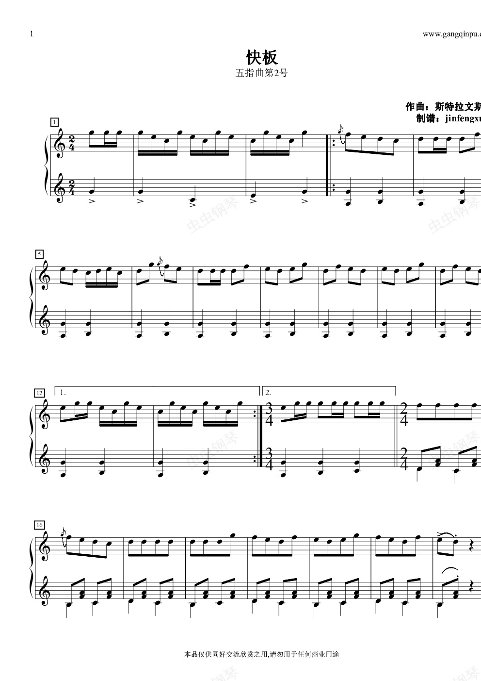 钢琴谱:斯特拉文斯基《快板》(选自《五指曲8首》)