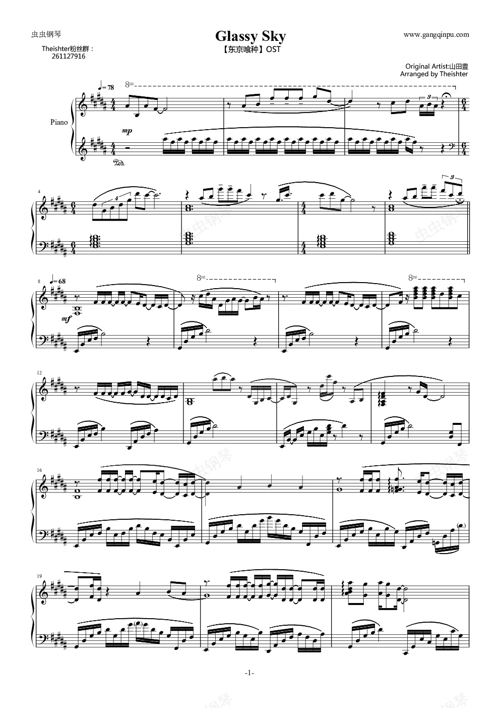 钢琴谱:【东京喰种】OST Glassy Sky