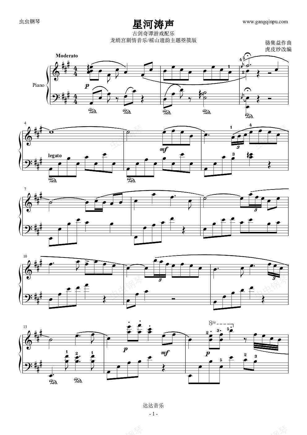 钢琴谱:古剑奇谭 星河涛声