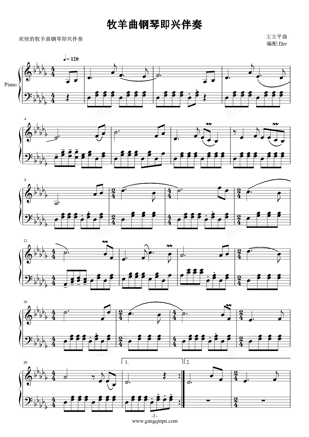 钢琴谱:牧羊曲钢琴即兴伴奏