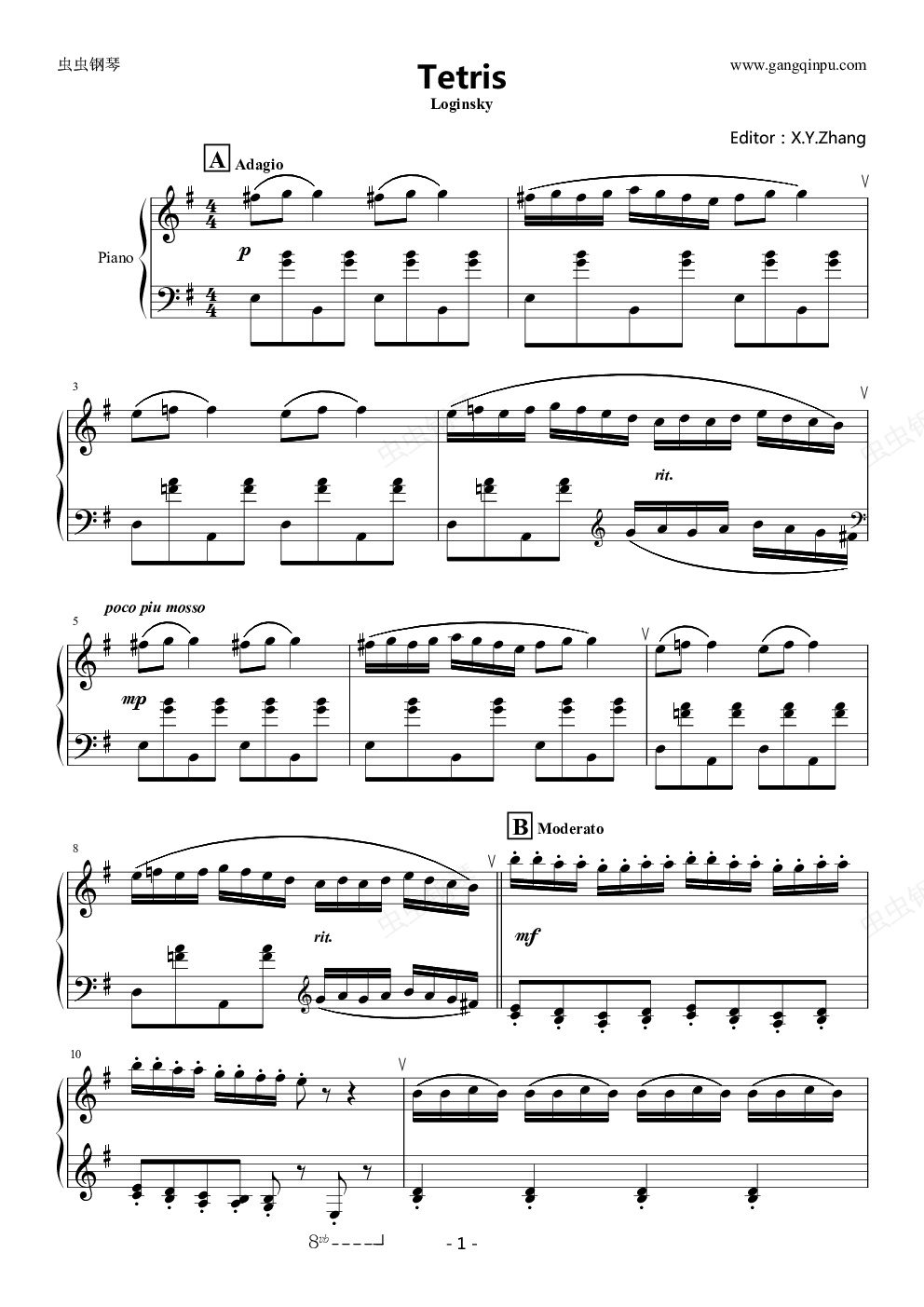 钢琴谱:Tetris Loginska(俄罗斯方块配乐)