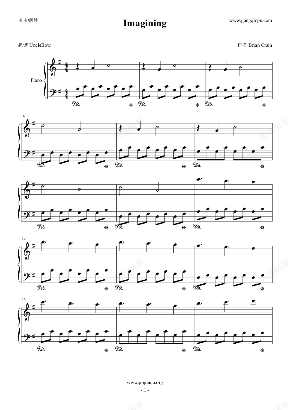 钢琴谱:Imagining
