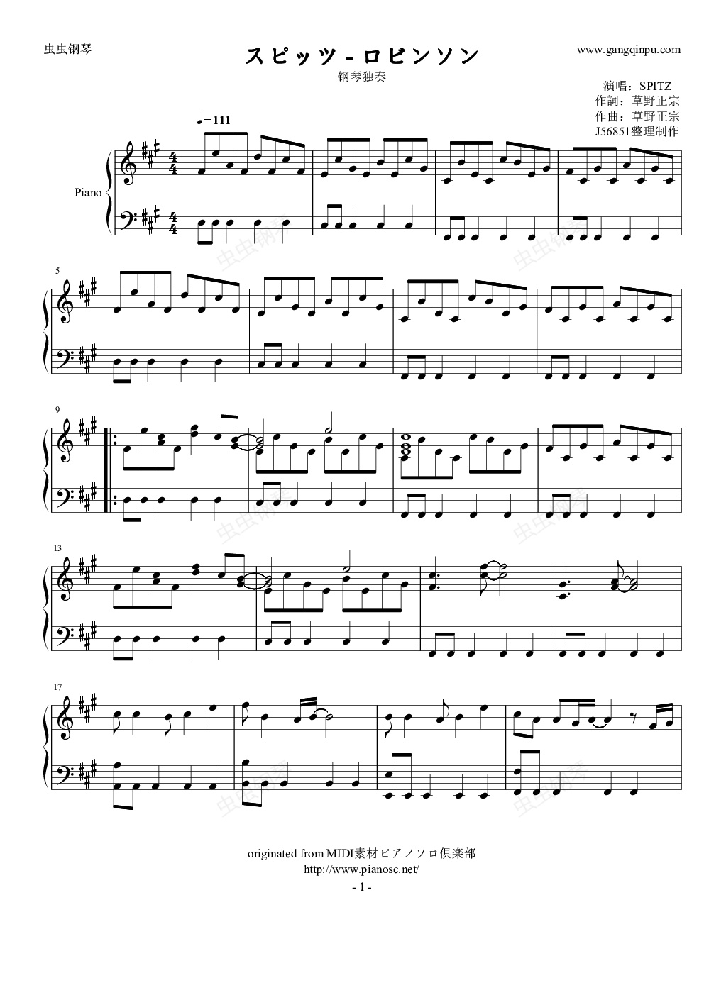 钢琴谱:Spitz - Robinson 钢琴独奏
