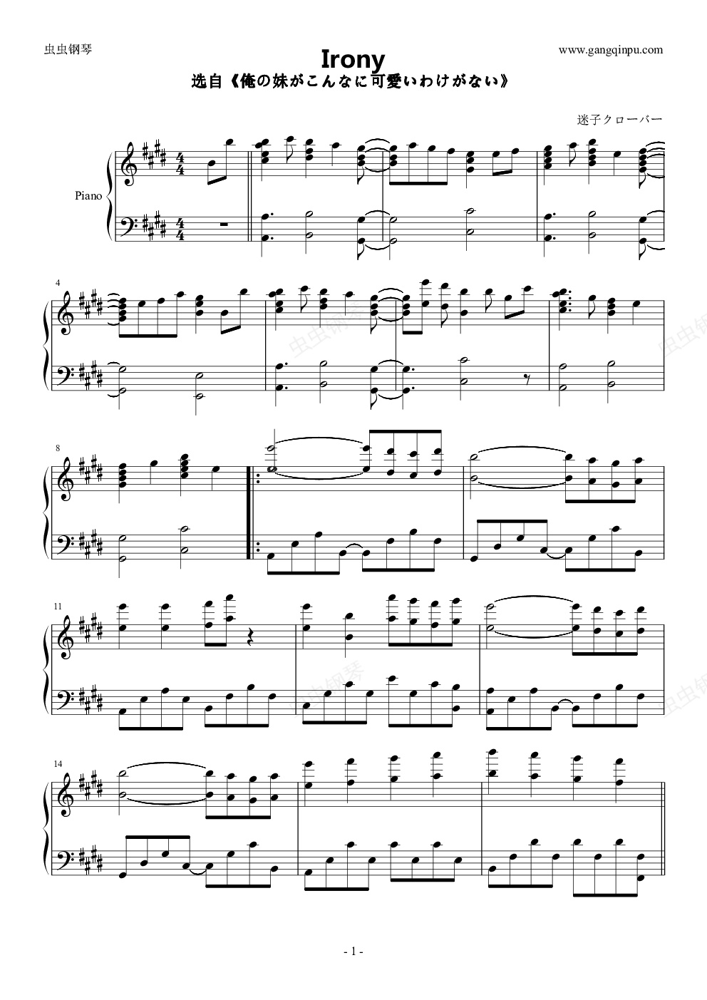 钢琴谱:Irony《我的妹妹不可能这么可爱》