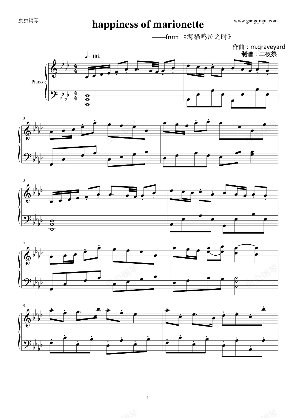 钢琴谱:海猫鸣泣之时--happiness of marionette