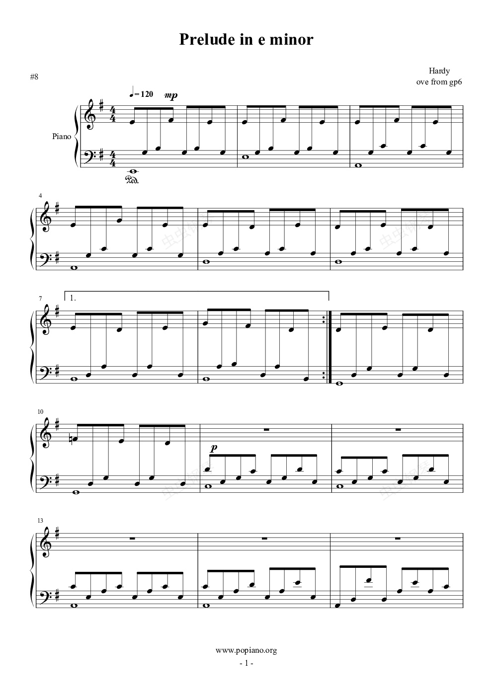 钢琴谱:前奏曲#8(e minor)