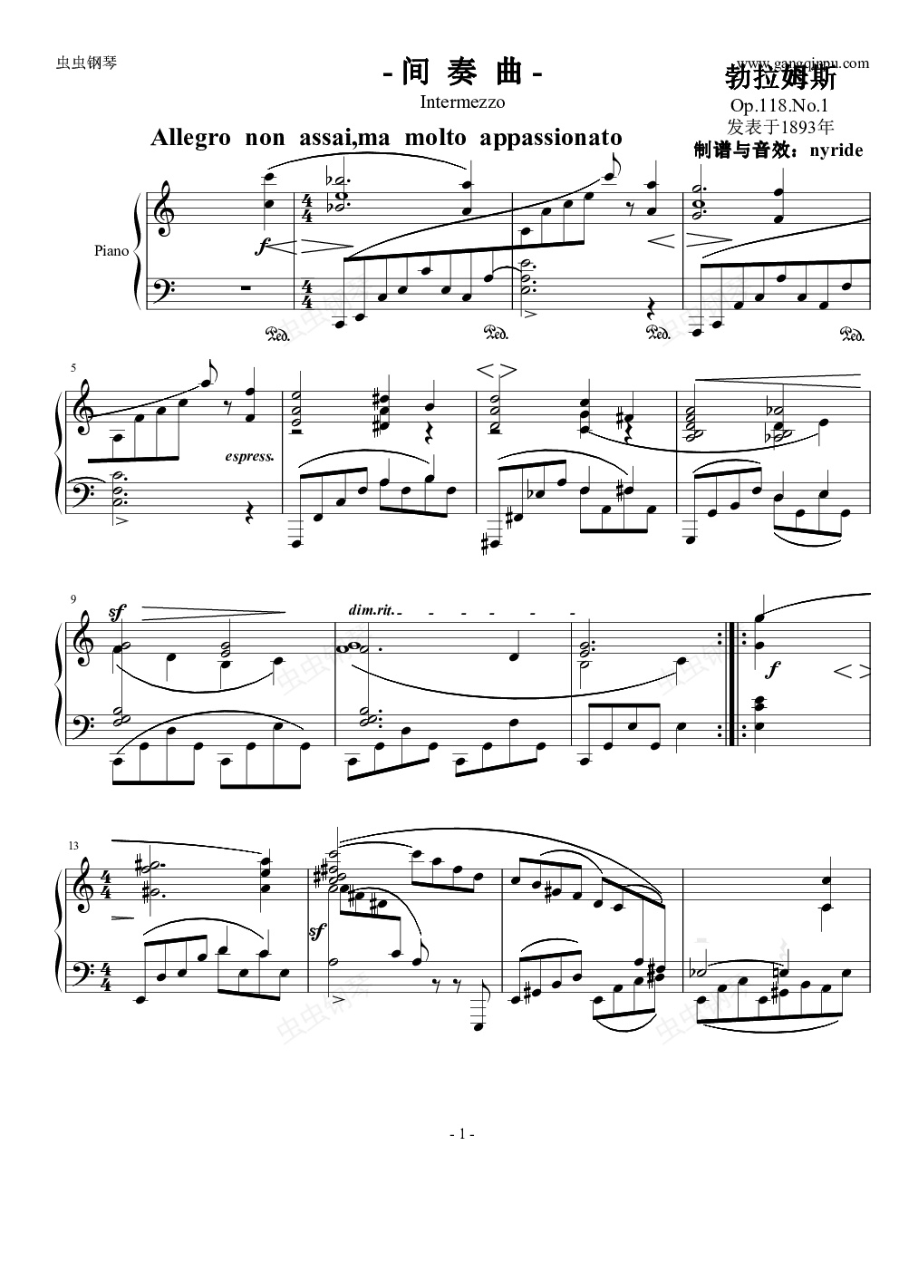 勃拉姆斯《间奏曲》Op.118 No.1
