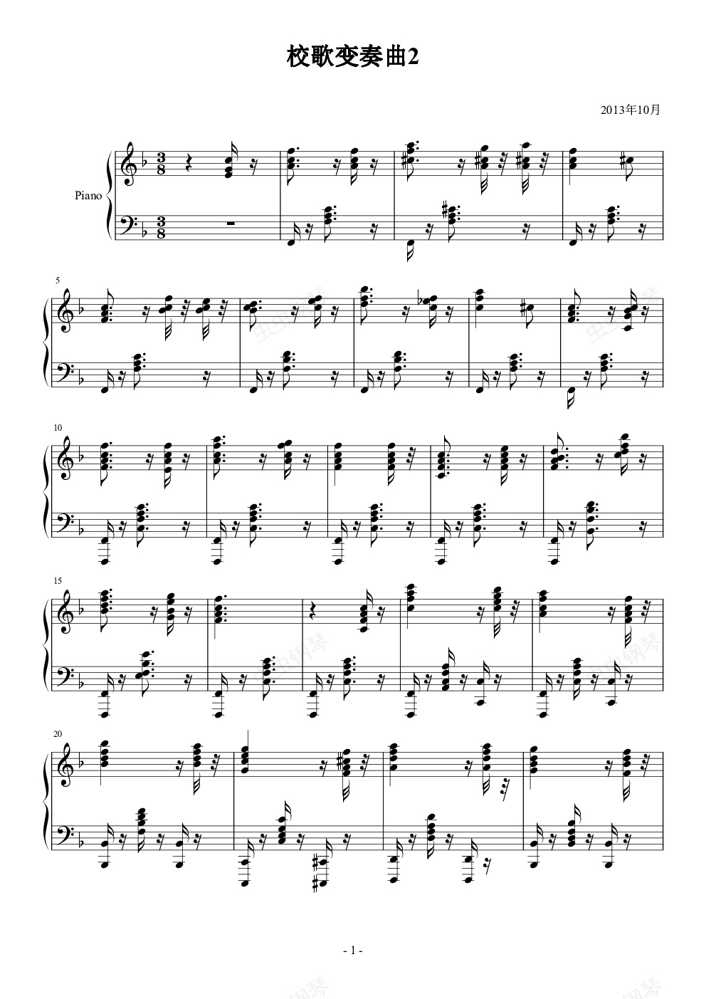 钢琴谱:校歌变奏曲2——完全没有个性的一曲