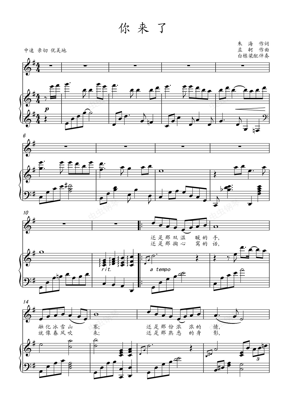 钢琴谱:《你来了》钢琴伴奏谱