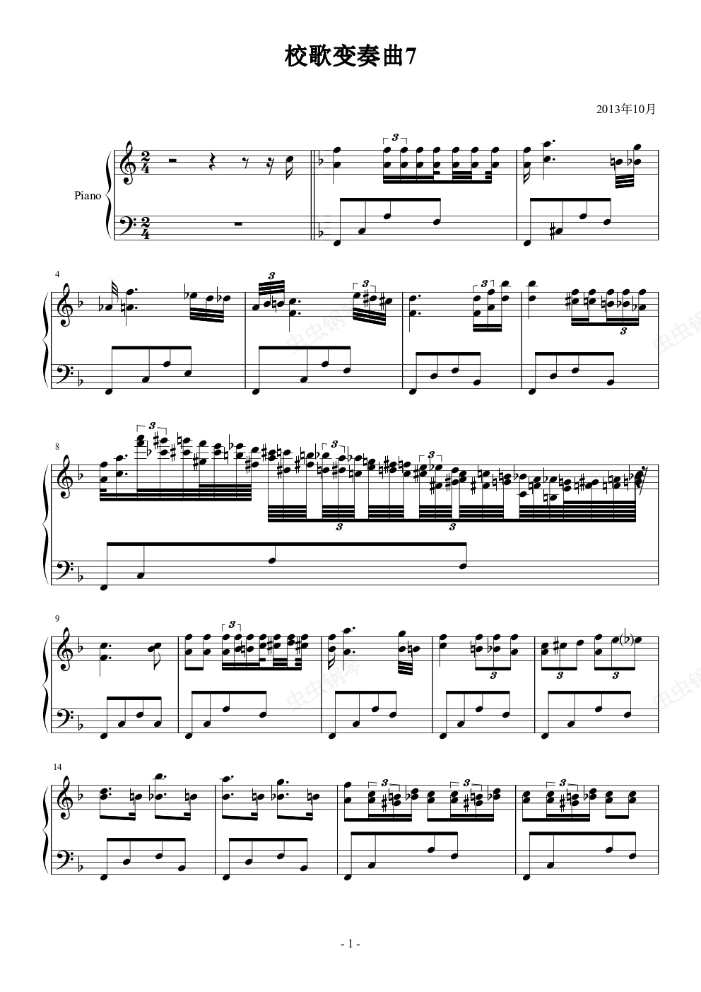 钢琴谱:校歌变奏曲7——略带忧伤的一曲