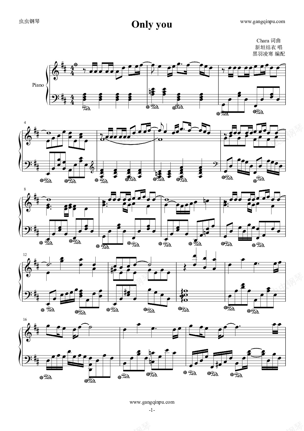 钢琴谱:Only you