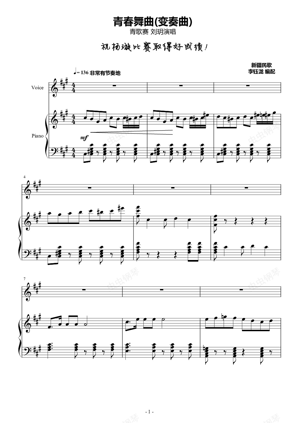 钢琴谱:青春舞曲变奏曲(青歌赛)
