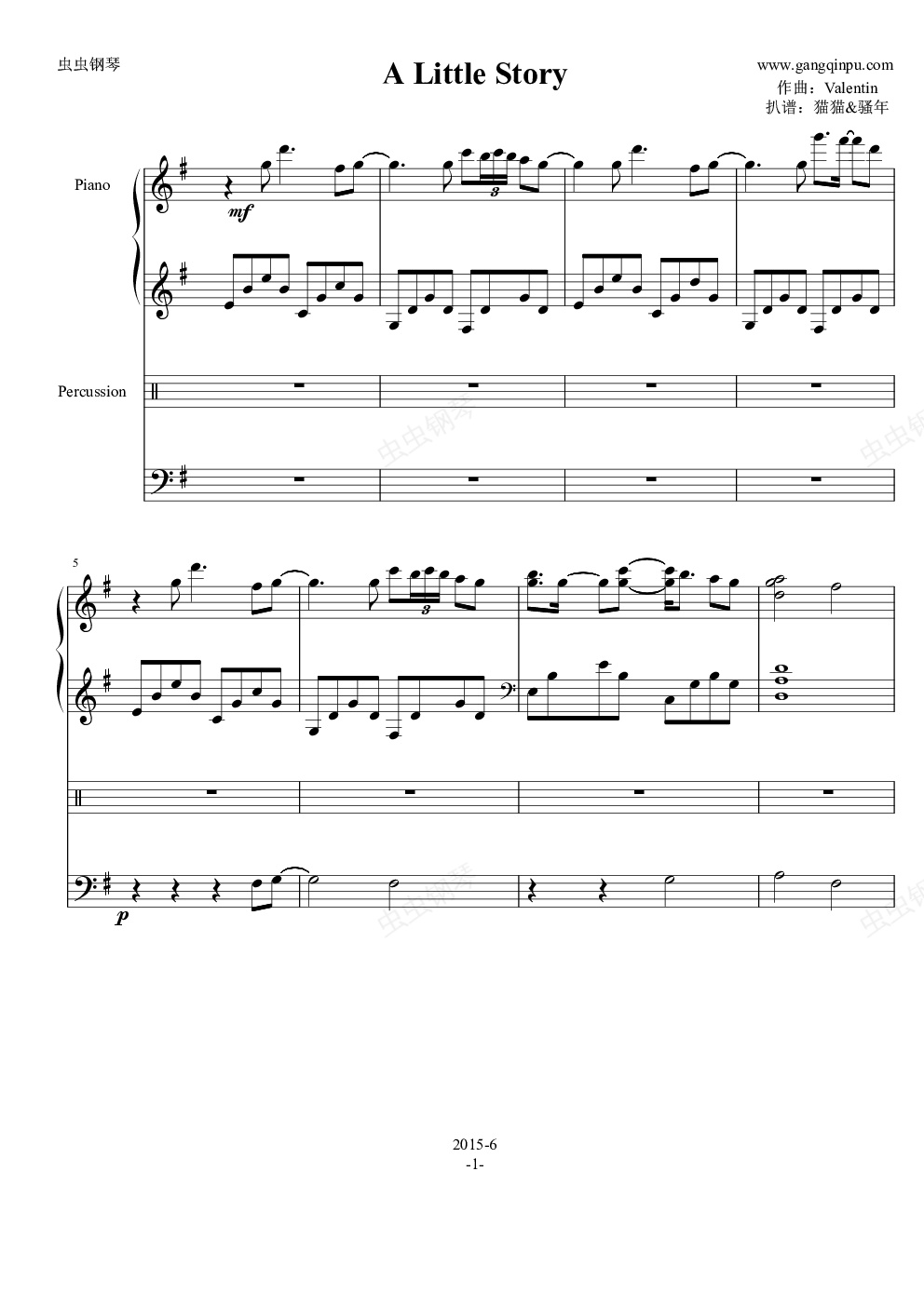 钢琴谱:A Little Story - Valentine