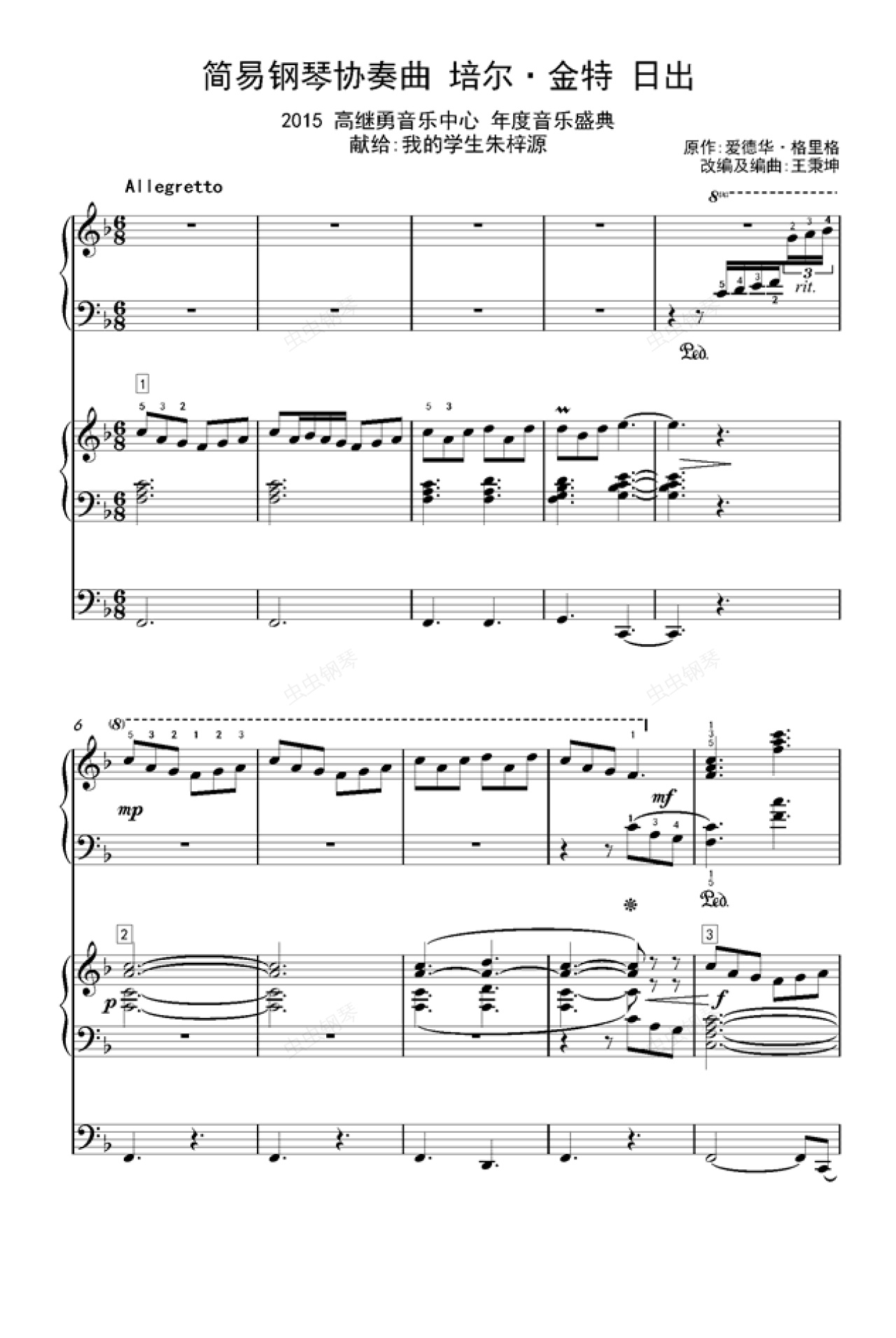 钢琴谱:Morning Mood 晨景 幼儿钢琴 双排键协奏版 王秉坤改编